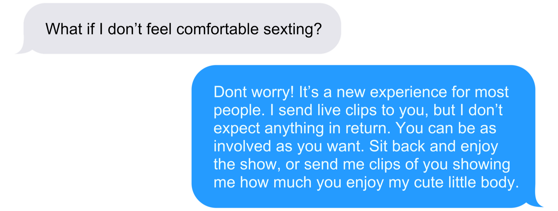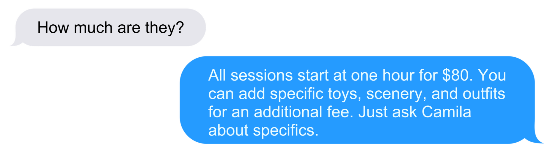 All sales are final. Due to the personal and intimate nature of the services provided, no refunds will be issued under any circumstances once payment is received.